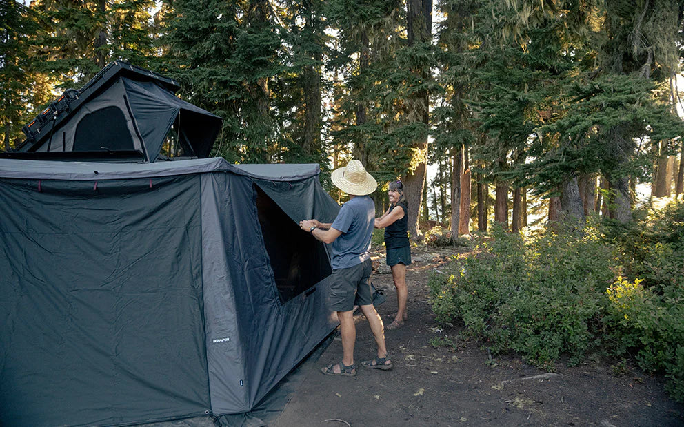 Transform your awning experience with the ExoShell 270 Wall Set. Offering both privacy and weather protection—seal the walls during rough weather or use any of the 4 extra large windows to let more sunlight in without letting in the bugs. The full set includes a wall to seal off the vehicle that keeps rain and bugs from entering from the backside.
