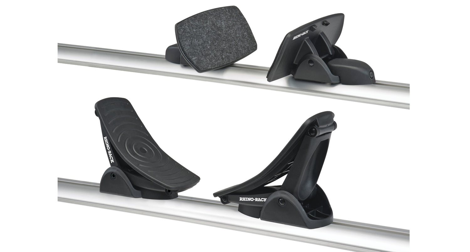 The Nautic rear loader comes complete with 2 front santoprene rubber pads designed to cushion your kayak and 2 rear pads are spring loaded and covered with felts allowing you to conveniently load your kayak or canoe from the rear. The Universal fitment of the clamp style allows the Nautic to be compatible with all current roof rack systems by clamping and securing the cradles onto your crossbars.