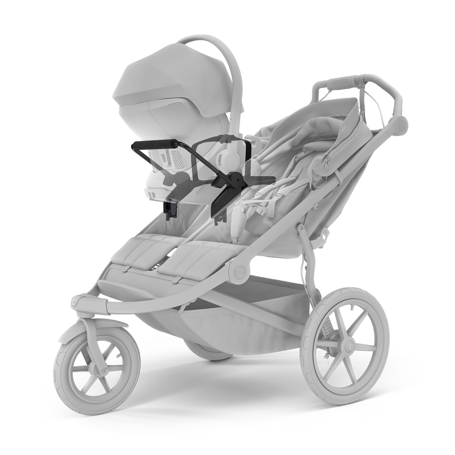 Click-in style car seat adapter compatible with Chicco and many other popular car seat model brands.