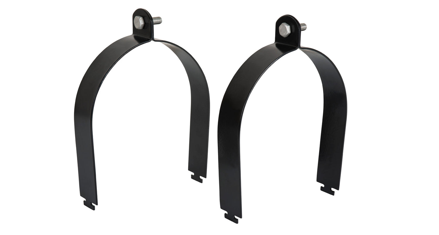 Made from galvanized steel, these 100mm / 4" pipe clamps are sold as a pair. They fit into the top channel of a Rhino-Rack Vortex Bar, and are secured in place with an M8 bolt and nyloc nut.