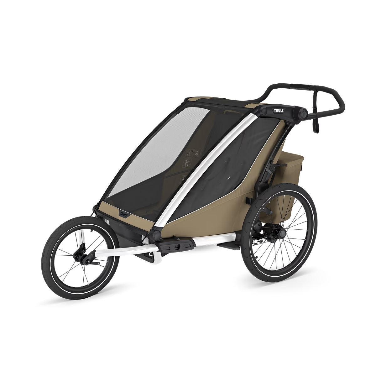 Inside the Thule Chariot Cross 2, children are greeted with plush, ergonomically designed seating for unparalleled comfort. The modular seating ability means that you can choose to have one kid sitting in the middle, or two kids on either side of the trailer. The Thule Chariot Cross 2 is committed to sustainability, utilizing materials that are not only PFAS free but resist sun damage and offer the possibility for repair or replacement, extending the lifespan of your trailer.